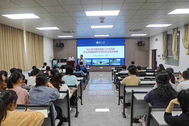 11月22日下午,邀请校党委宣传部覃安基副部长到学院作《深入学习贯彻党的二十大精神 齐心构建新时代意识形态工作大格局》的专题宣讲。全体教职工和学生代表九十多人聆听了报告。