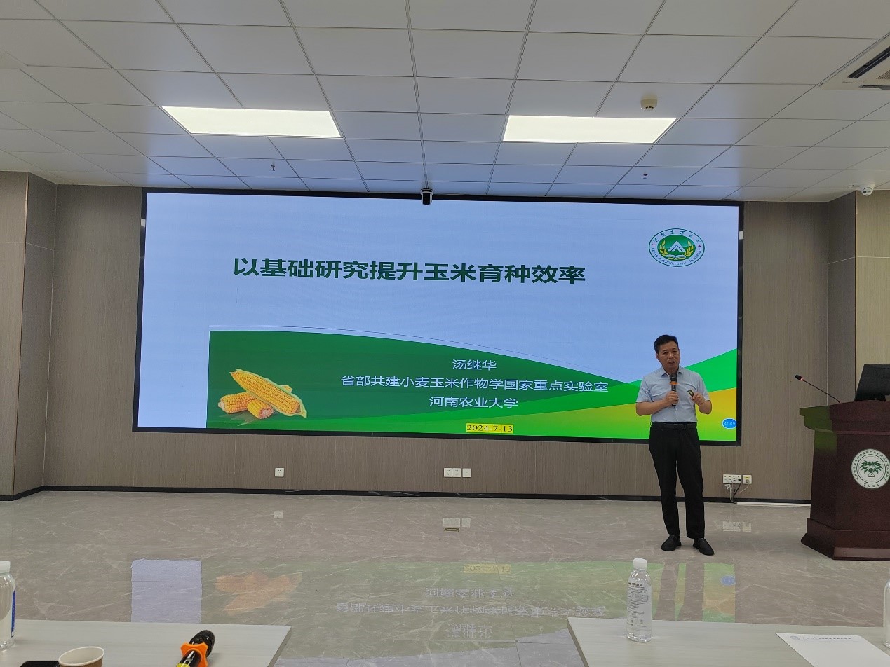 汤继华教授作了题为“以基础研究提升玉米育种效率”的学术报告。报告由一、我国玉米生产现状与育种目标;二、玉米重要性状关键基因发掘;三、以基础研究促进育种效率提升三个部分组成。汤继华教授深入分析了未来玉米品种选育的方向与优势,并鼓励同学们把课堂学习、科学研究和社会实践紧密结合起来,为乡村振兴贡献力量。