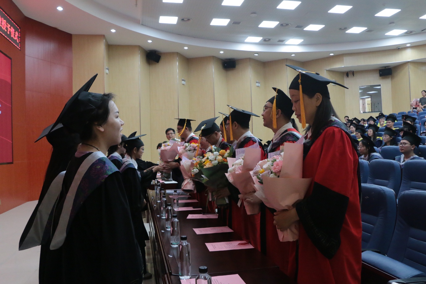 随后,毕业生代表给老师们敬献鲜花,表达对学校、学院和老师们辛勤培育的感激之情。