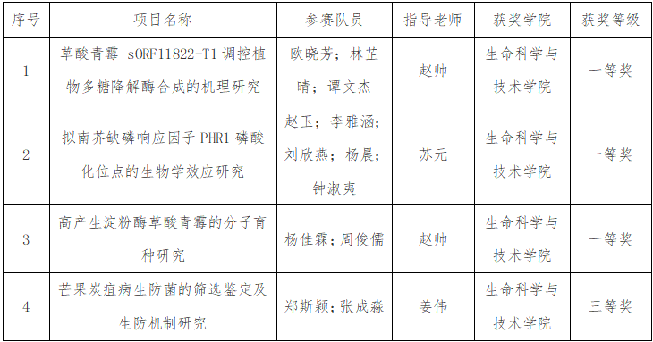 第十届全国大学生生命科学竞赛(科学探究类)获奖名单