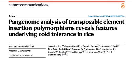 转座子(Transposable Elements)是驱动基因组结构变异的关键力量,深刻影响着植物的性状变异与环境适应性进化。然而,由于其高度重复的特性,对转座子插入多态性(TIPs)的高效精准鉴定和遗传效应解析仍是分子育种领域的难点,其在作物耐冷性中的作用机制也缺乏系统性解析。随着图形泛基因组技术的发展,作物基因组研究正从单一参考转向群体变异全景解析,也为转座子的分子育种利用带来新的契机。