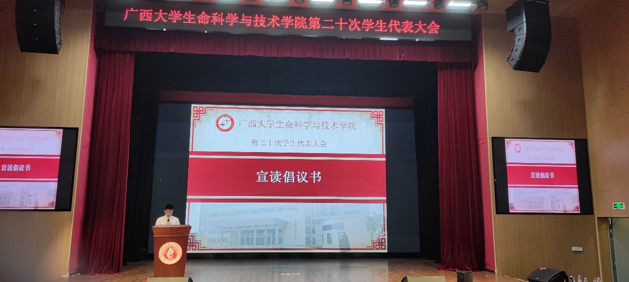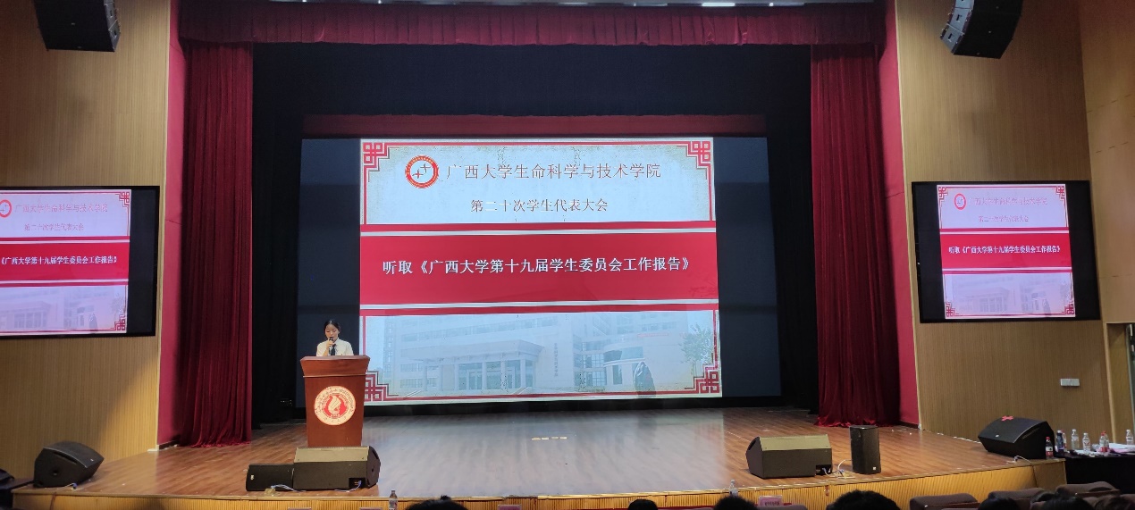 会议听取并审议了《广西大学生命科学与技术学院第二十次学生代表大会选举办法》、《广西大学生命科学与技术学院学生会章程(草案)》。