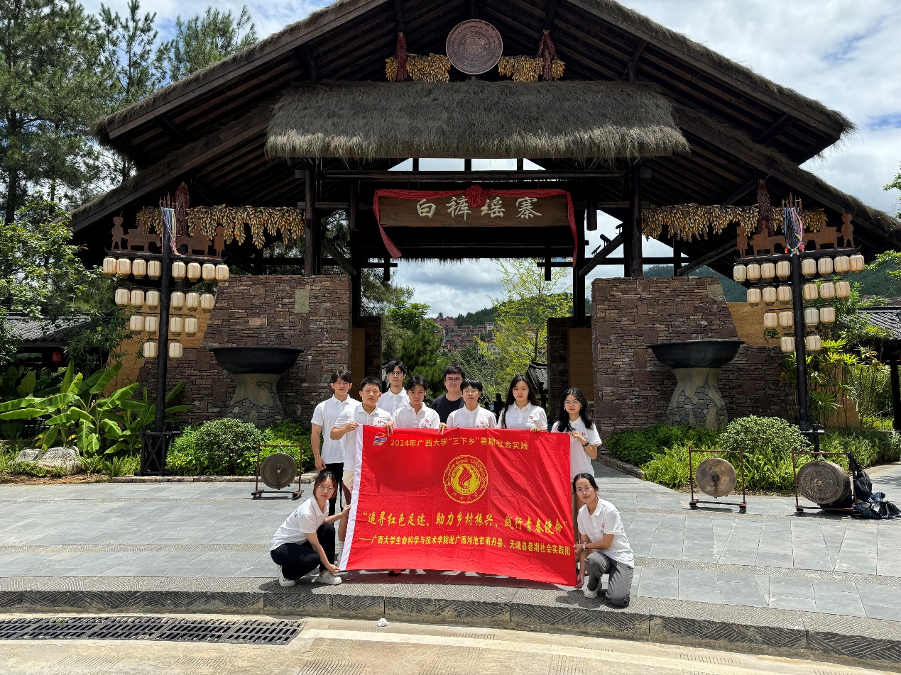 为深入学习宣传贯彻党的二十大精神和2024年习近平总书记五四青年节对全国广大青年寄语精神,充分发挥社会实践在高校思想政治引领工作中的重要作用,2024年7月17日-7月20日,广西大学生命科学与技术学院暑期社会实践团赴河池市南丹县、天峨县围绕产业调研、访企拓岗、铸牢中华民族共同体意识、寻访新时代伟大成就、追溯红色足迹等主题开展了为期4天的暑期社会实践活动。此次暑期社会实践团由生命科学与技术学院党委副书记、纪委书记覃文月带队,副院长赵帅、生物技术系副主任黄罗冬、团委书记马奕及10名学生代表参加此次活动。
