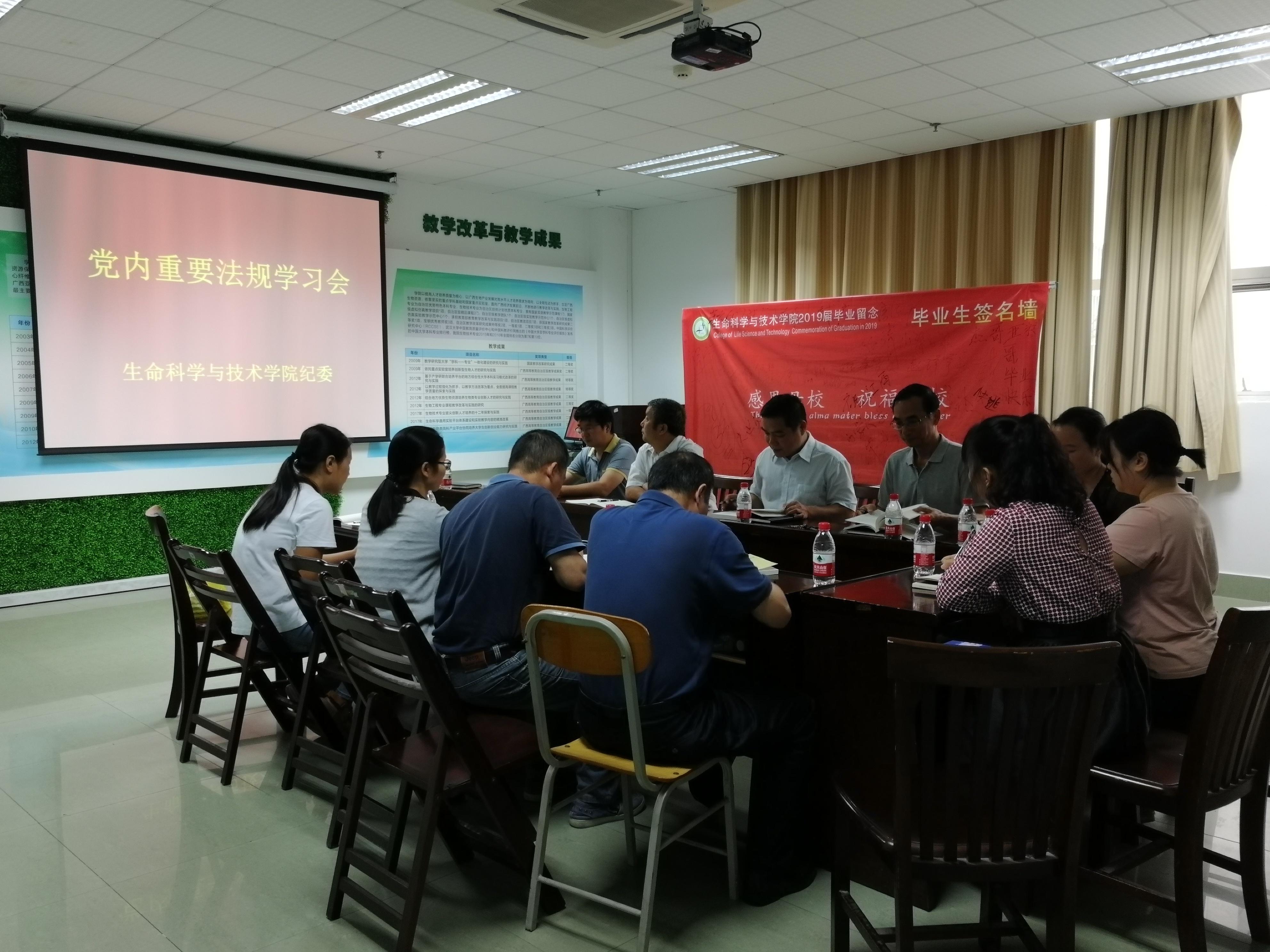 会议首先观看了廉政警示教育视频,进一步深化警示教育。随后围绕“学先进找差距,受警示存戒惧”主题,深入学习《习近平新时代中国特色社会主义思想学习纲要》和《习近平关于“不忘初心、牢记使命”重要论述选编》,从政治建设、全面从严治党、组织纪律和政治纪律等方面进行了先进典型教育和廉政警示教育。会上,院党委副书记、纪委书记覃健强作了《中国共产党廉洁自律准则》《关于实行党风廉政建设责任制的规定》、院党委书记莫柏林作了《中国共产党支部工作条例(试行)》等党内重要法规的解读学习。全体与会院领导围绕学习主题逐一进行了发言。