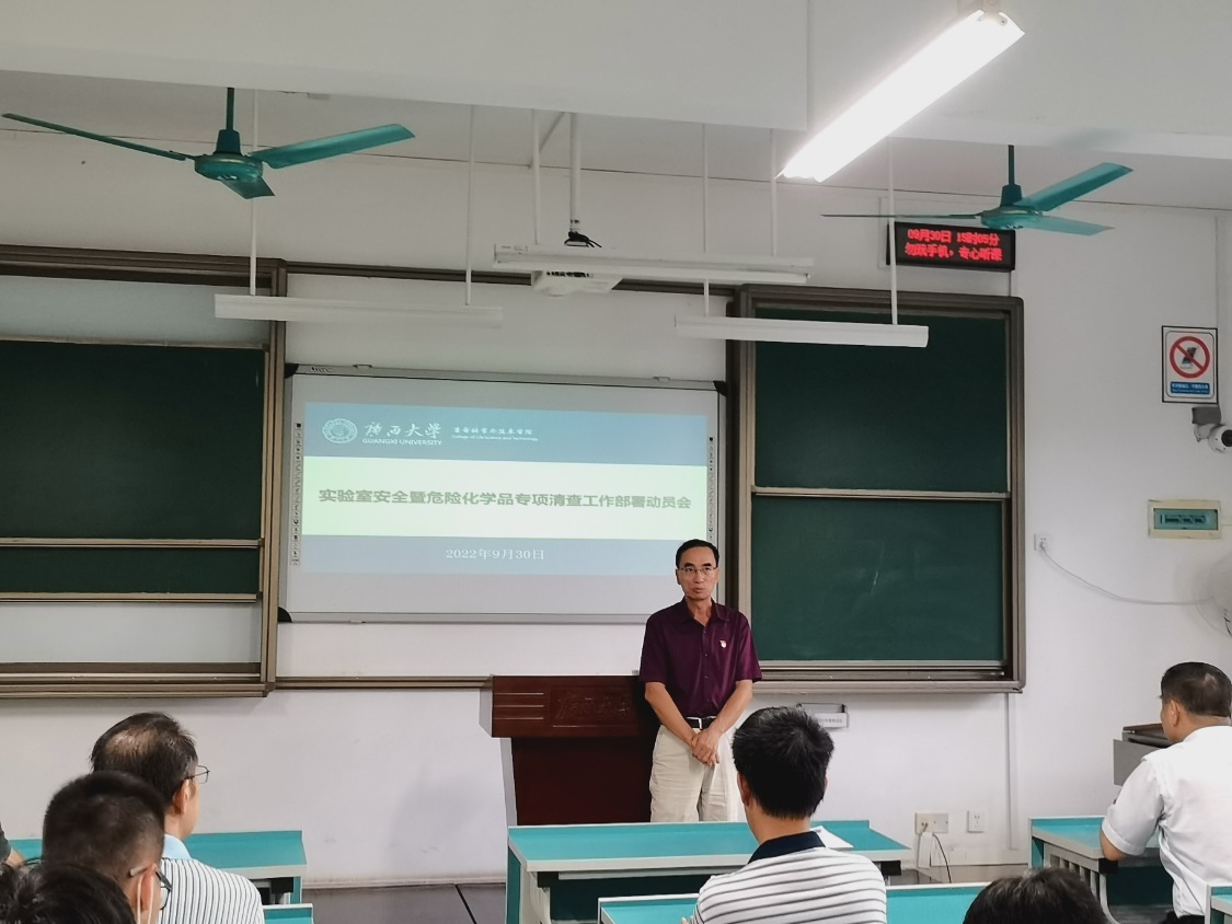 覃健强副院长就近期实验室危险化学品安全检查中发现的问题进行了通报,要求各实验室立即开展危险化学品安全隐患自查自纠专项工作,全面清查是否存在危险化学品不按规定存放的情况、全面清查危险化学品的名称数量,排除安全隐患。